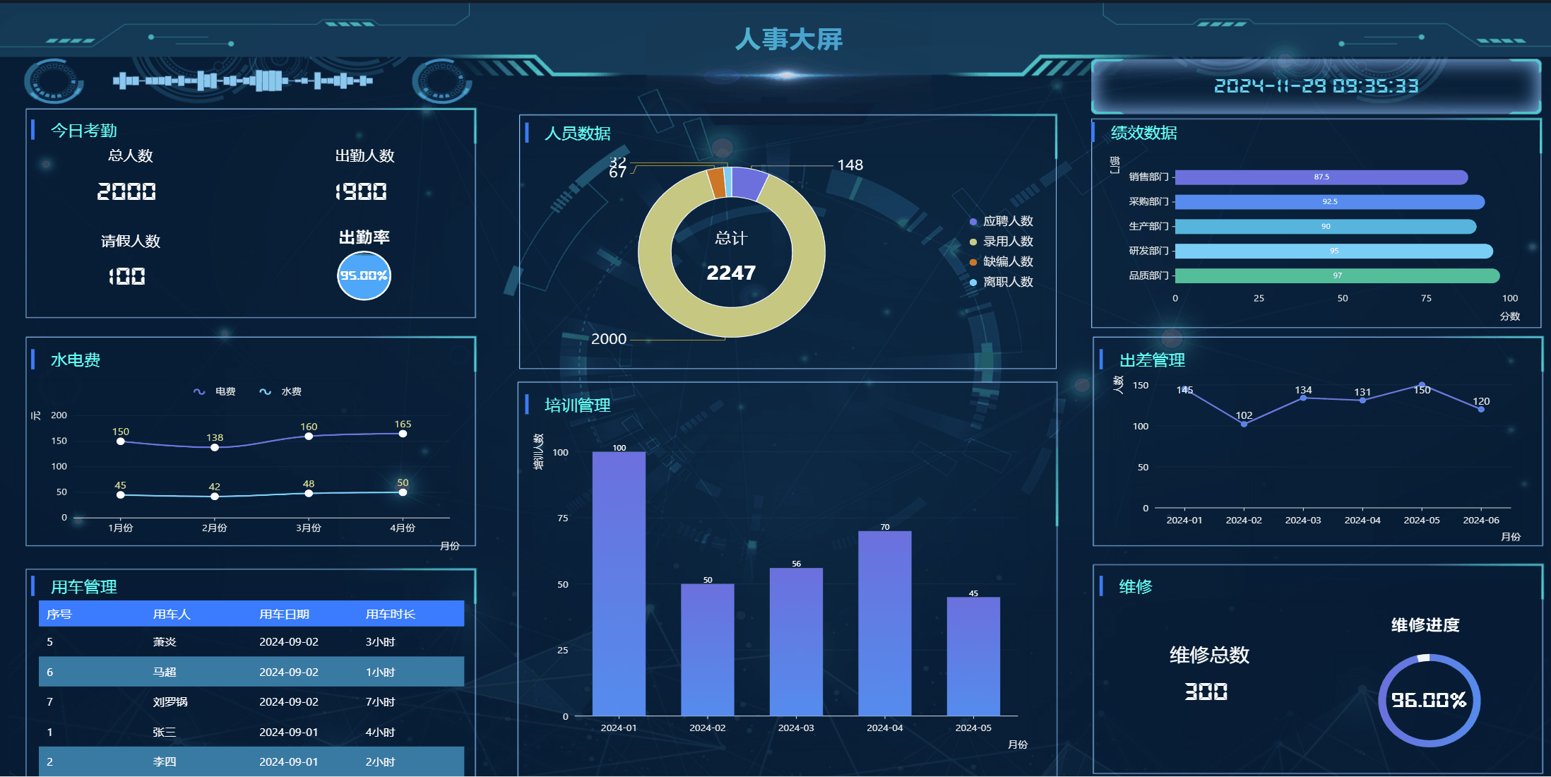 多终端、多维度(销售,项目,生产,财务等不同维度)展示能力,结合数据应用上下游能力与可视化资源,为企业提供一体化的智慧大屏解决方案。